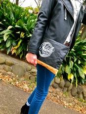 黒×茶の配色で製作し、ロゴを豪快にプリント